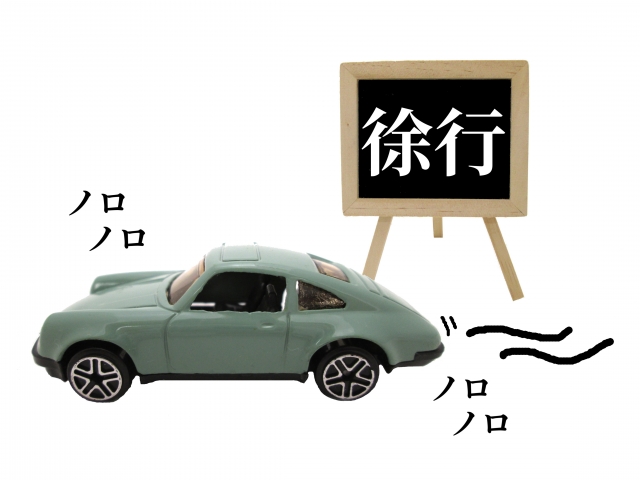 徐行とは、アクセルを離すだけでは足りません。車がノロノロ動く状態を徐行と呼びます。具体的には、ブレーキを踏んだら、いつでも「カクン」と止まれる状態で走行すること。しっかり徐行の速度に車をコントロールすることが重要なポイントです。