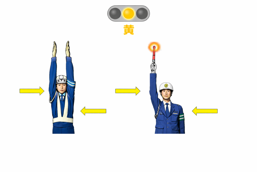 ちなみに、警察官の手信号は「身体の向き」で赤色と青色を「手の上げ下げ」で黄色を判断します。