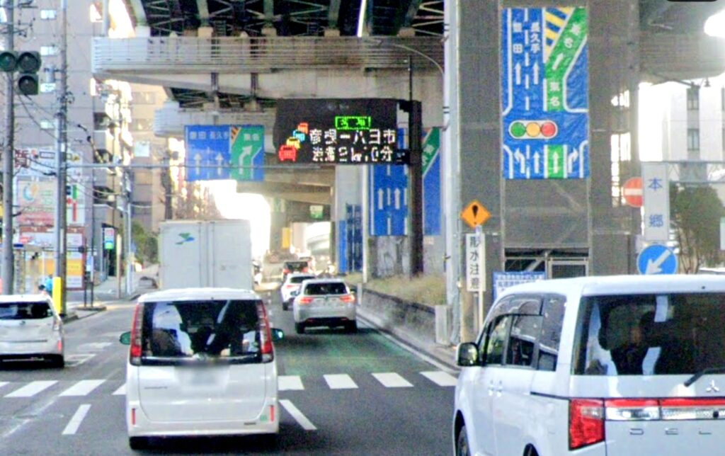 ここでは、事前に気づいたドライバーさんが早めに右車線へ移動するため、混雑時は右側だけが渋滞し、ギリギリまで左にいると進路変更が難しくなってしまいます。
