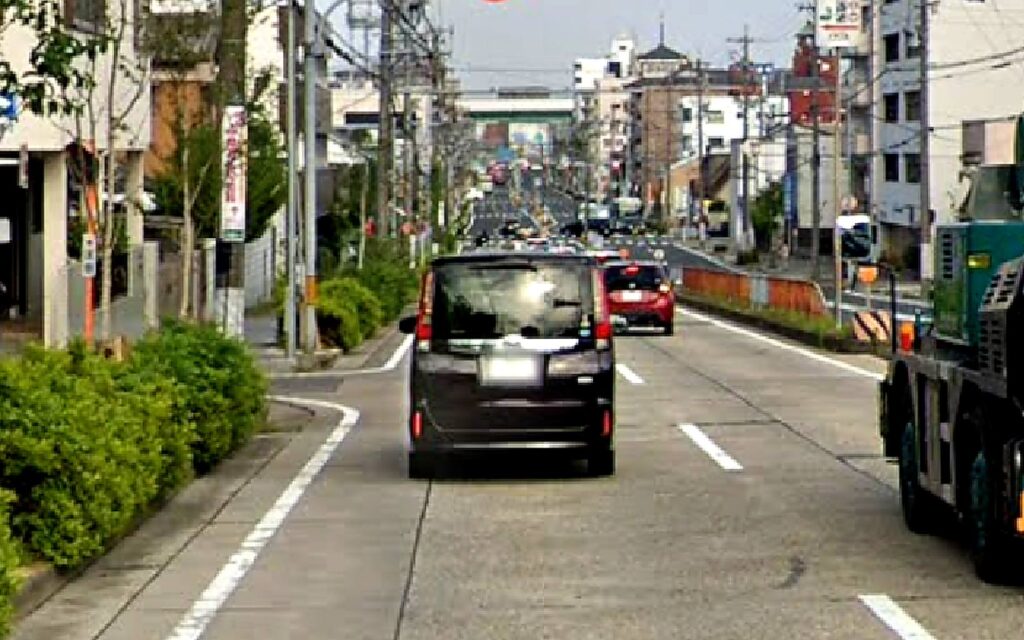 名古屋市内には、渋滞対策のために「時間帯によって中央線が動く道路(リバーシブルレーン)」や、写真のように「片側1車線・反対側2車線」のような変則的な道路があります。