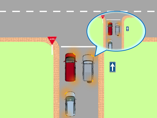 斜めに止まると後続車が通れません。そんな場所では、まっすぐに止めましょう
