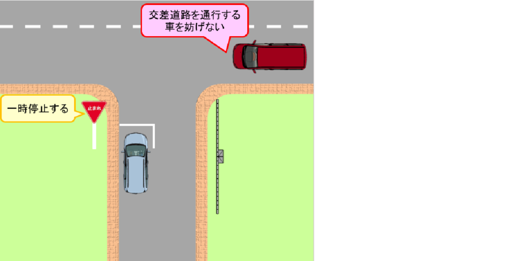 「止まるとともに、交差道路の邪魔をしない(進行妨害の禁止)」