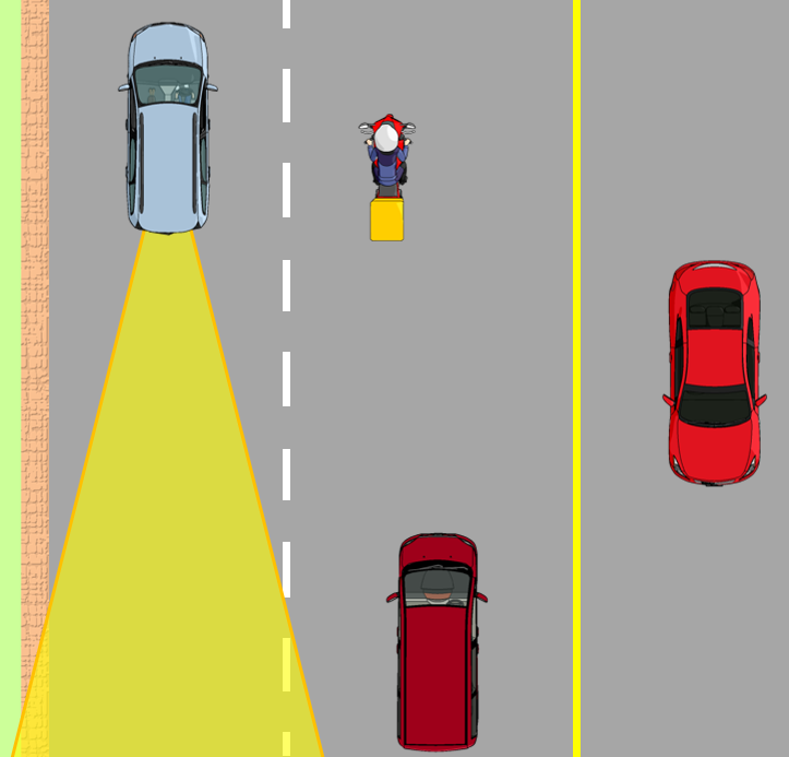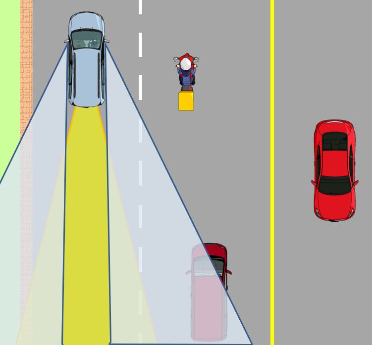 ここに並走している車やバイクは、サイドミラーには一切映りません。