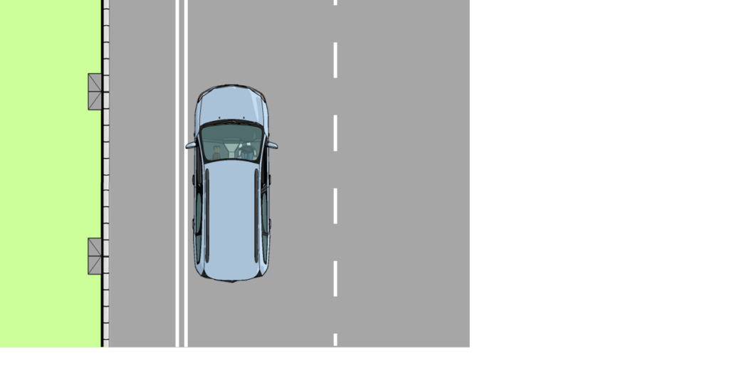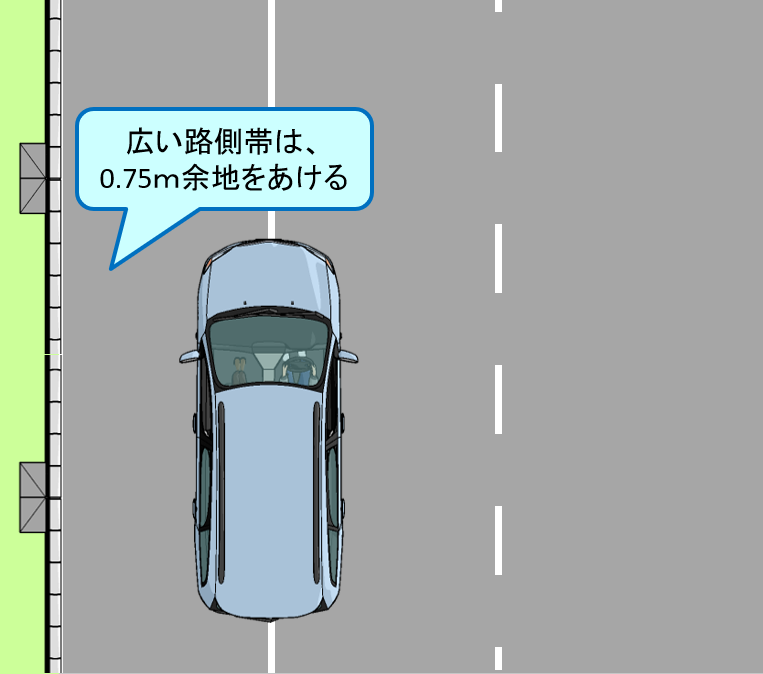 - 普通の路側帯なら、0.75m空けて中に入る。