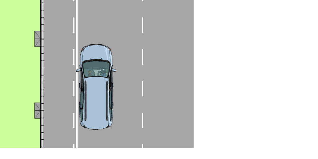 - 普通の路側帯なら、0.75m空けて中に入る。