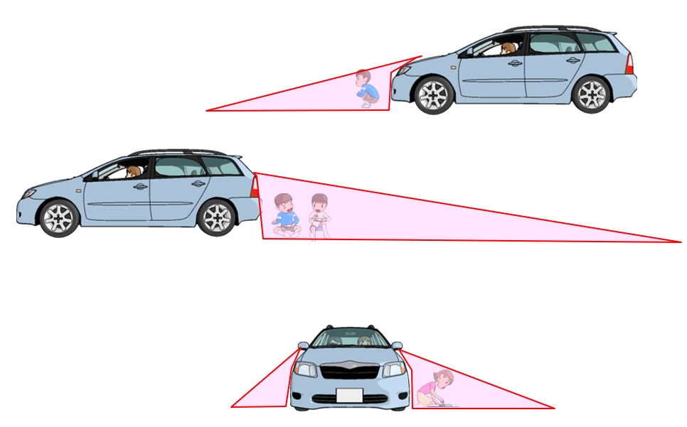 車のすぐ近くや後ろに小さい子供がいても、運転席からは全く見えません。