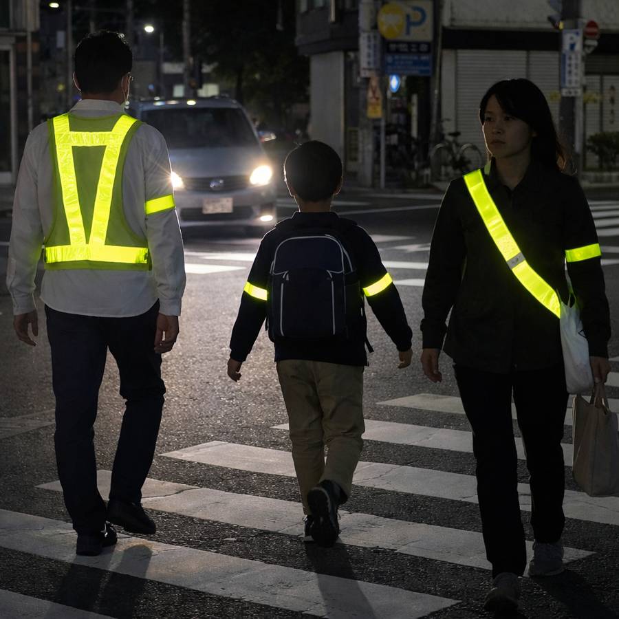 また皆さんが夜間、歩行者として道路を利用する際には、反射材を身に着けることで自身の視認性を高め、自動車から発見しやすくなるメリットがあります。