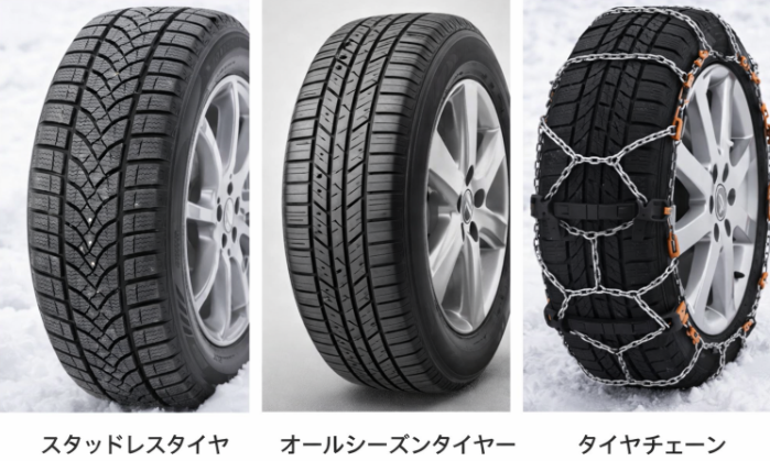 冬用タイヤ。雪道・凍結路面でも走行可能。