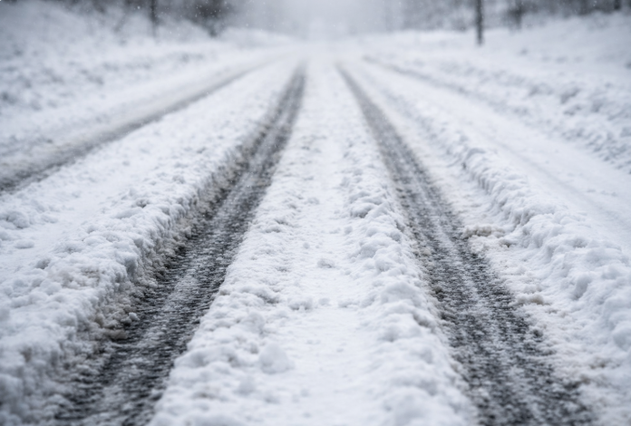 雪が積もっていたり、凍結していたりする道路を**「ノーマルタイヤ(夏用タイヤ)」**で走ることは、**法令違反(公安委員会遵守事項違反)**です。