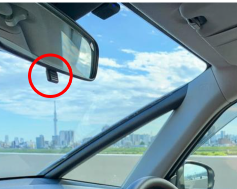 ミラーの下に、小さなプラスチックのツマミがありませんか?このレバーが**「防眩ミラー」と呼ばれる機能です。