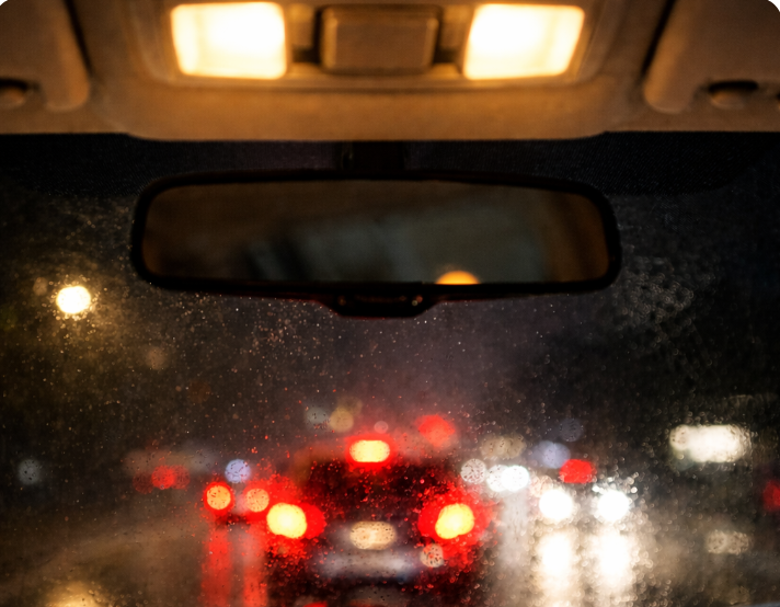 車内が明るいと、フロントガラスに車内の様子が映り込み、外の景色(必要な情報)が全く見えなくなります。