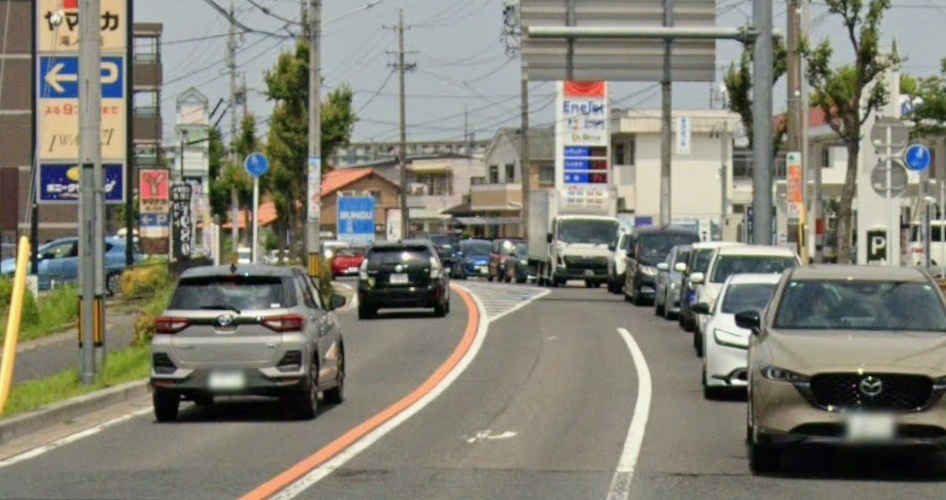 スーパー周辺では、駐車場に出入りする車だけでなく、買い物帰りの歩行者や自転車が同時に動きます。特に注意したいのは、駐車場の出入口・信号待ち車列の切れ目・店舗前の歩道など、人が道路に出てきやすい場所です。