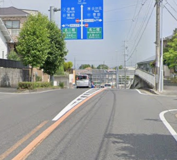 笠寺緑線を平手方面から鳴丘二丁目交差点へ向かうと、途中で急な上り坂があり、**その坂を上り切ると今度はすぐに下り坂に変わります。**そして、その下り坂の先に鳴丘二丁目交差点があります。