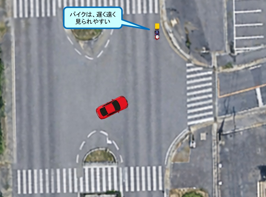 交差点の中では、「右折車と直進バイク」「右折車と直進原付」といった二輪車が絡む衝突事故が複数発生しています。