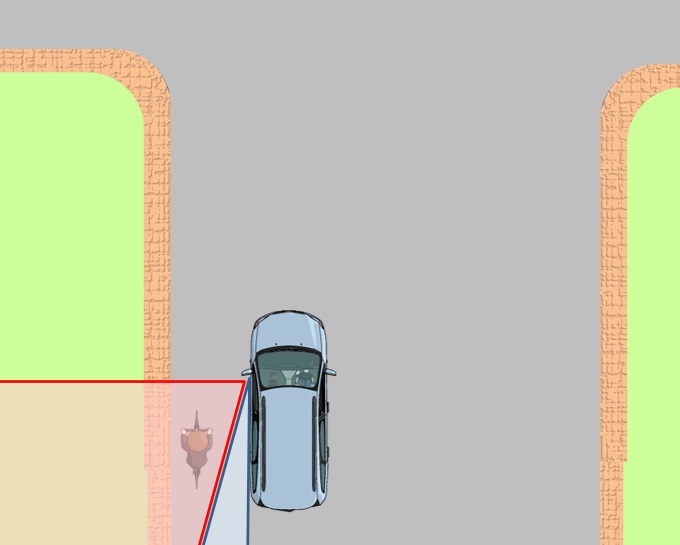 - 車の左斜め後ろには、ミラーに映らない「巨大な死角」がある。