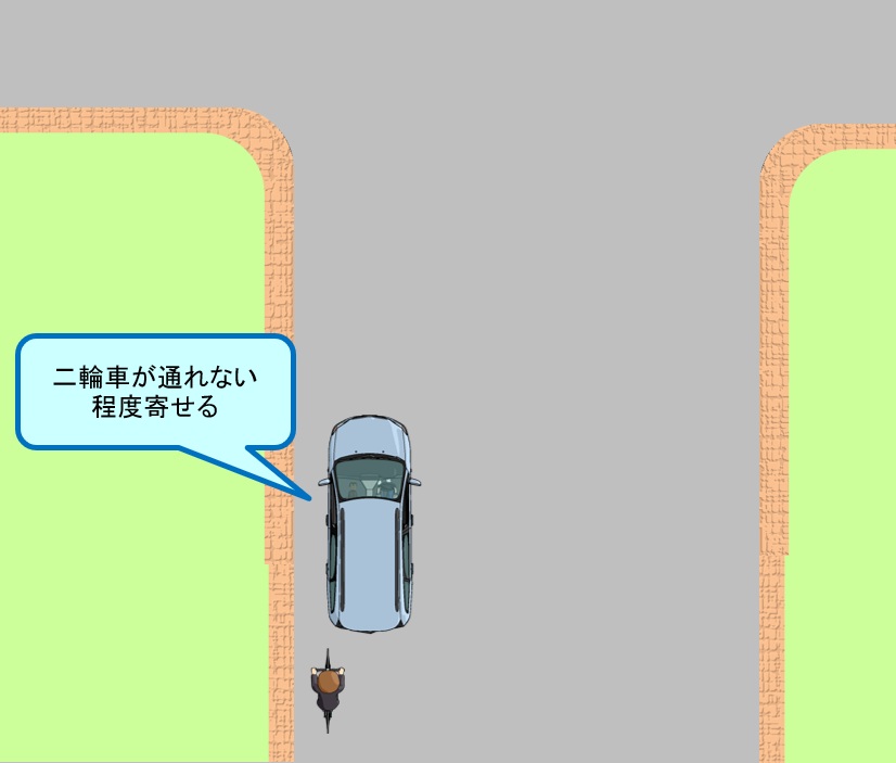 - 👉 左にしっかり寄せて停止する(すり抜けのスペースを作らない)
