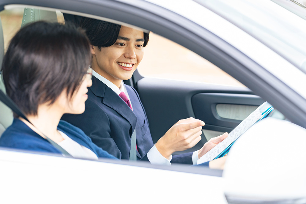 運転に対する不安はあるかと思いますが、インストラクターと一緒にハンドルを握って運転していると思ってください。運転中は慌てないよう優しく丁寧に説明、案内をいたします。いざという時もインストラクターがハンドル・補助ブレーキの操作をするのでご安心ください。